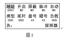 進入“系統(tǒng)設置”界面后,按“1”鍵進入“設備設置”界面,光標在“地址”上,按數(shù)字鍵輸入“0001”地址下的“A000”變?yōu)?ldquo;A001”表示對A001地址的設備進行設置如下圖2所示: