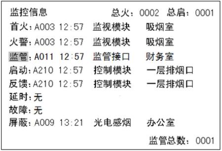 監(jiān)管信息是控制器監(jiān)視的除火災(zāi)報(bào)警、故障信號(hào)之外的其他輸入信號(hào)。如監(jiān)管模塊、防盜接口等其它各類(lèi)信號(hào)。