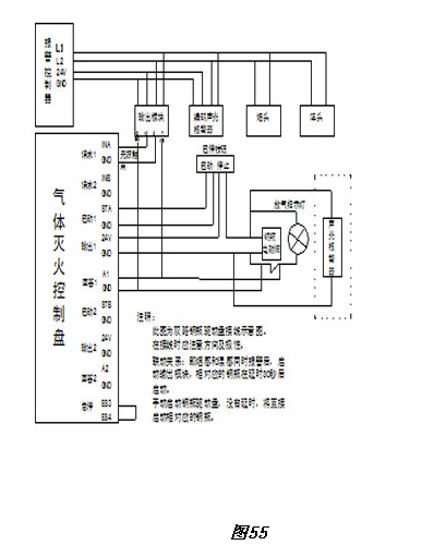(5)HJ2200/2型核中警壁掛式氣體滅火控制盤系統(tǒng)接線見圖55: